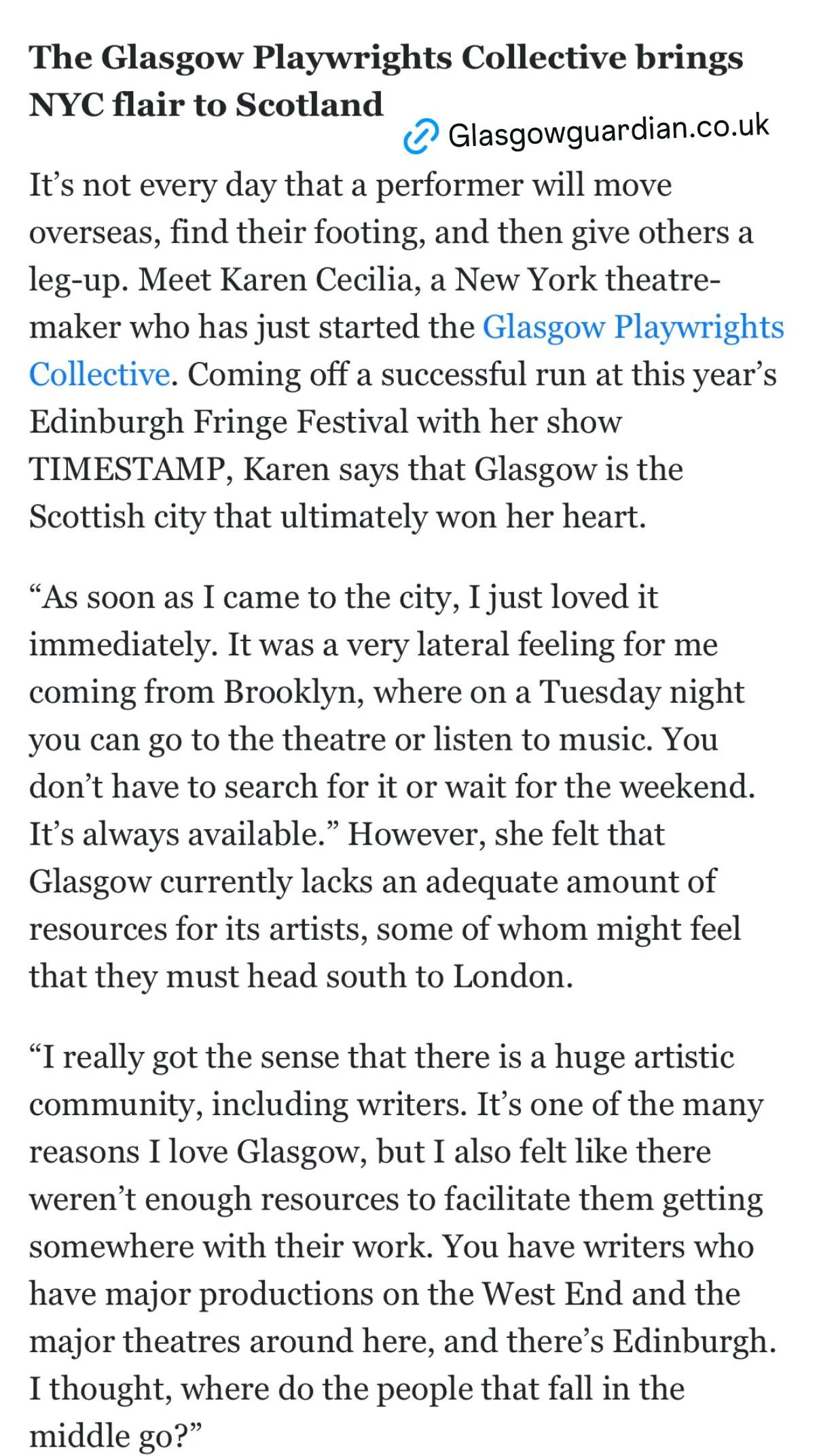 The Glasgow Playwrights’ Collective receives write up from The Glasgow Guardian